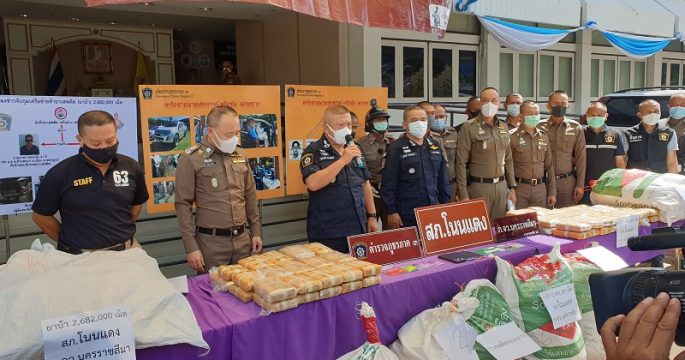 ตำรวจ 191 โชว์ผลงานจับกุมแก๊งขนยาเสพติดรายสำคัญ 3 คน ยึดยาบ้า 5.9 ล้านเม็ด