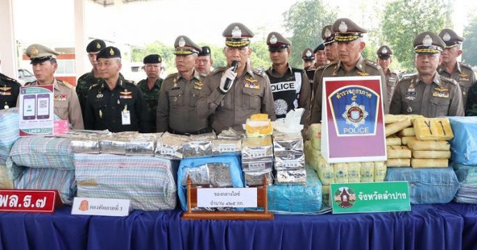 ลำปาง 1 ธ.ค.- รอง ผบ.ตร.-ผบช.ภาค 5 เกาะติดคดียึดยาเสพติดล็อตใหญ่ค่ากว่าพันล้านบาทที่ลำปาง พบขบวนการลักลอบเป็นเยาวชนและวัยรุ่นขนยาบ้า 4 ล้านเม็ด ไอซ์ 600 กก. เตรียมส่งต่อเครือข่ายในภาคกลาง พล.ต.อ.เฉลิมเกียรติ ศรีวรขาน รองผู้บัญชาการตำรวจแห่งชาติ พล.ต.ท.มนตรี สัมบุณณานนท์ ผู้บัญชาการตำรวจภูธรภาค 5 พล.ต.ต.นิยม ด้วงสี ผู้บัญชาการตำรวจภูธรจังหวัดลำปาง และนายสุรพล บุรินทราพันธุ์ รองผู้ว่าราชการจังหวัดลำปาง ร่วมแถลงที่ด่านเอกซเรย์ยาเสพติดแม่พริก อ.แม่พริก จ.ลำปาง กรณีตรวจยึดยาเสพติดล็อตใหญ่เป็นยาบ้า 4,008,000 เม็ด และไอซ์ 600 กิโลกรัม พร้อม 4 ผู้ต้องหาชาย อายุ 16-22 ปี ทั้งนี้ เมื่อบ่ายวันที่ 30 พ.ย.ที่ผ่านมา ตำรวจ สภ.แม่พริก รับแจ้งพบรถกระบะต้องสงสัยขับอย่างเร็วสร้างความหวาดเสียวบนถนนในหมู่บ้านแม่พริกลุ่ม หมู่ 1 ต.แม่พริก อ.แม่พริก จึงนำกำลังเข้าตรวจสอบพบเป็นรถกระบะ สีดำ […]