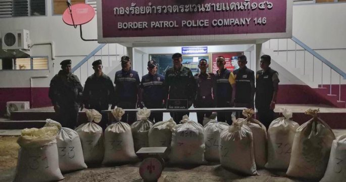 ชุดสนธิกำลังประจวบฯ ยึดยาเสพติดใบกระท่อมผงกว่า 10 กระสอบ 434 กก. ซุกป่าละเมาะใกล้ชายแดน เตรียมเล็ดรอดเข้าเขตชั้นใน