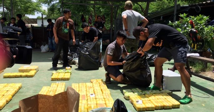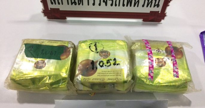 ประจวบคีรีขันธ์ 14 ก.ค.- ตร.รฟ.หัวหินยึดกระเป๋าใส่ยาเสพติดวางทิ้งโบกี้รถไฟ กทม.-สุไหงโก-ลก มีทั้งยาบ้าและไอซ์ 3 กก. พ.ต.ท.มงคล พรหมเมศร์ สว.ส.รฟ.หัวหิน จ.ประจวบคีรีขันธ์ นำชุดเจ้าหน้าที่ตรวจตราความเรียบร้อยบนขบวนรถเร็วที่ 171 กรุงเทพ-สุไหงโก-ลก แล่นเข้าชานชลาสถานีรถไฟหัวหิน และพบกระเป๋าพลาสติกวางอยู่ชั้นสัมภาระโบกี้ที่ 11 แต่ไม่มีใครแสดงตัวเป็นเจ้าของ เมื่อเปิดดูพบว่าเป็นยาเสพติดประเภทไอซ์จำนวน 3 ถุง ถุงละ 1 กิโลกรัม รวม 3 กิโลกรัม และพบกระเป๋าเป้อีกใบในโบกี้ที่ 2 ไม่มีใครเป็นเจ้าของ ภายในกระเป๋ามีห่อยาบ้าจำนวน 3,000 เม็ดจึงยึดไว้เป็นหลักฐาน ส่วนยาเสพติดทั้งหมดคาดว่ามูลค่าเกือบ 10 ล้านบาท.-สำนักข่าวไทย