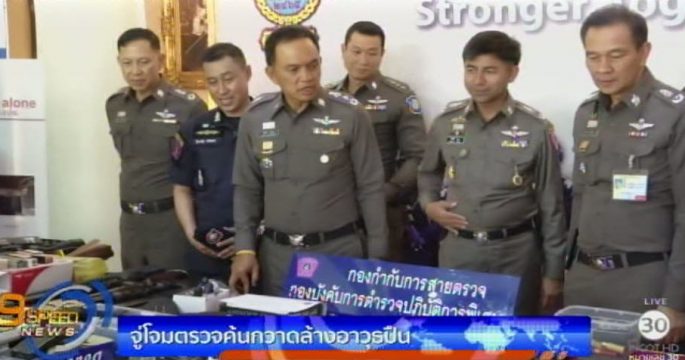 ชลบุรี 6 มิ.ย. – ตำรวจสนธิกำลังบุกค้นบ้านหลังหนึ่งใน อ.สัตหีบ จ.ชลบุรี ยึดอาวุธปืนพร้อมกระสุนจำนวนมาก หลังชาวบ้านร้องคนในบ้านชอบใช้อาวุธปืนยิงขู่ สร้างความหวาดกลัว ตำรวจ สภ.สัตหีบ นำกำลังชุดสืบสวน พร้อมเจ้าหน้าที่สายตรวจ และชุดปฏิบัติการพิเศษ นำหมายศาลจังหวัดพัทยา เข้าตรวจค้นบ้านหลังหนึ่งในพื้นที่ อ.สัตหีบ จ.ชลบุรี แต่คนในบ้านกลับปล่อยสุนัขกัดเจ้าหน้าที่ ก่อนจะจับสุนัขไว้ได้ ซึ่งเกิดการชุลมุนกับลูกเจ้าของบ้านที่ออกมาโวยวาย โดยนางเตือนใจ อายุ 66 ปี ได้แสดงตัวเป็นเจ้าของบ้าน ผลการตรวจค้นพบอาวุธปืนสั้นกึ่งอัตโนมัติ ยี่ห้อ COLT สีดำ ขนาด .45 มม. จำนวน 1 กระบอก, กระสุนปืนขนาด .45 มม. จำนวน 2 กล่อง รวม 38 นัด, อาวุธปืนยาว (ลูกซอง) จำนวน 1 กระบอก และกระบอกพลาสติกดัดแปลงให้มีเสียงคล้ายอาวุธปืน จำนวน 1 กระบอก […]