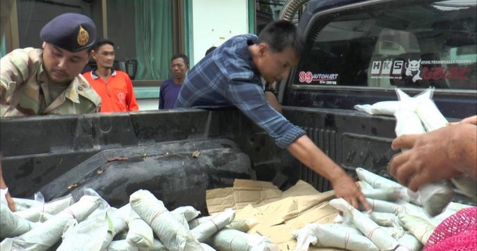 สงขลา 4 มิ.ย.- ฝ่ายปกครองอำเภอสะเดาตรวจเข้มชายแดนยึดรถกระบะ 2 คัน หลังจากคนขับกับพวกจอดทิ้งพากันวิ่งหนีเข้าป่า พบกระสอบใส่ใบกระท่อม 778 กก. นายณพล พาหุมันโต ปลัดอำเภอสะเดา จ.สงขลา พร้อมชุดอาสารักษาดินแดน กองร้อยอาสารักษาดินแดนอำเภอสะเดา 15 นาย ออกลาดตระเวนในพื้นที่ ต.สำนักแต้ว อ.สะเดา ชายแดนไทย-มาเลเซีย หลังมีข่าวยาเสพติดจะถูกลักลอบเข้ามาในพื้นที่ ปรากฏว่าเมื่อมาถึงบริเวณถนนบ้านบางนะ-คลองยนต์ ม. 6 ต.สำนักแต้ว พบชายวัยรุ่น 2 คน ขับรถจักรยานยนต์ออกมาจากทางแยกตัดเข้าป่าสวนยางพารา และรีบเร่งเครื่องหลบหนีไป เจ้าหน้าที่จึงเข้าตรวจสอบไปตลอดเส้นทางดังกล่าวประมาณ 6 กิโลเมตร พบรถกระบะ 2 คัน กำลังแล่นมาและหยุดกลางครัน จากนั้นกลุ่มชายประมาณ 5-6 คน รีบวิ่งออกจากรถเข้าไปป่าข้างทาง การตรวจสอบท้ายรถกระบะ สีบรอนซ์ทอง ทะเบียน ผก 5993 สงขลา พบกระสอบ 20 ใบ ใส่ใบกระท่อมสด และอีกคันเป็นกระบะสีดำ ทะเบียน […]