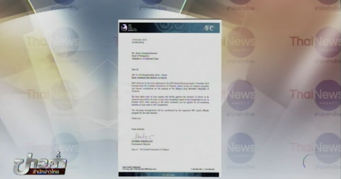 สมาพันธ์ฟุตบอลเอเชีย ตอบรับคำขอให้นักเตะทีมชาติไทยรุ่นอายุไม่เกิน 19 ปี สวมปลอกแขนสีดำตลอดการแข่งขันทุกนัดที่เหลือ และอนุมัติให้ยืนสงบนิ่งก่อนการแข่งขันเกมวันที่ 16 ต.ค.นี้