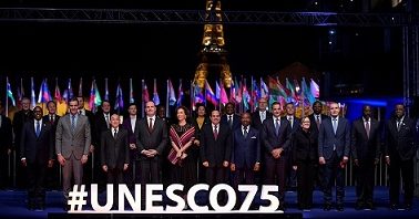 กรุงปารีส นครหลวงของฝรั่งเศส ซึ่งเป็นที่ตั้งขององค์การการศึกษา วิทยาศาสตร์ และวัฒนธรรมแห่งสหประชาชาติ หรือ ยูเนสโก ร่วมฉลองวันก่อตั้งยูเนสโกมาครบ 75 ปีด้วยการจัดแสดงแสงที่หอไอเฟล ที่เป็นแลนด์มาร์คสำคัญในกรุงปารีสในวันศุกร์ ตามเวลาท้องถิ่น