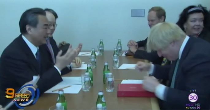นายหวัง อี้ รัฐมนตรีต่างประเทศจีน และนายบอริส จอห์นสัน รัฐมนตรีต่างประเทศอังกฤษ หารือนอกรอบระหว่างการประชุมระดับรัฐมนตรีของคณะมนตรีความมั่นคงแห่งสหประชาชาติ เรื่องปัญหานิวเคลียร์ของเกาหลีเหนือ