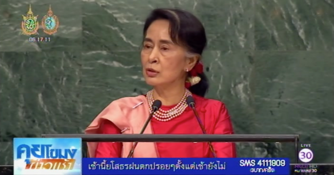 นางออง ซาน ซูจี ขึ้นเวทีสมัชชาใหญ่สหประชาชาติ (ยูเอ็น) ครั้งประวัติศาสตร์ ให้คำมั่นเมียนมาร์ไม่หนีจากเส้นทางสู่สันติภาพและความปรองดอง