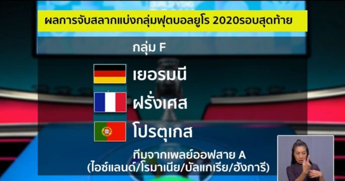 ยูฟ่าจับสลากรอบแบ่งกลุ่มศึกยูโร 2020 กลุ่มเอฟ “Group of Death” เยอรมนีอยู่ร่วมสายฝรั่งเศส โปรตุเกส ส่วนอีกทีมจะมาจากรอบเพลย์ออฟ ขณะที่อังกฤษอยู่กลุ่มดี เจอโครเอเชีย และสาธารณรัฐเช็ก