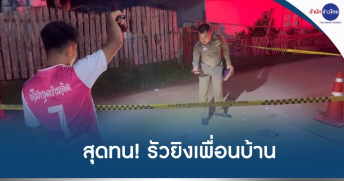 หนุ่มใหญ่ รัวยิงเพื่อนบ้าน บาดเจ็บสาหัส ลั่นสุดทนพฤติกรรม ตั้งวงดื่มสุราเสียงดังรบกวนนานหลายเดือน