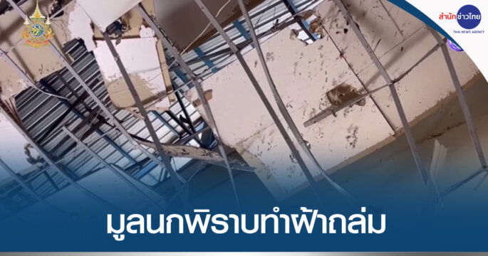 เหตุฝ้าเพดานหอประชุม 100 ปี อ.คำเขื่อนแก้ว จ.ยโสธร พังถล่มทับครู-นักเรียน เจ็บ 7 ราย พบสาเหตุเกิดจากมูลนกพิราบสะสมปริมาณมาก จนฝ้าเพดานรับน้ำหนักไม่ไหว