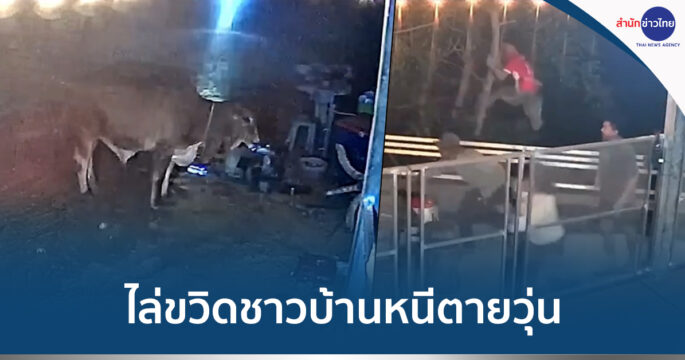 วัวหลุดจากตลาดนัดโค-กระบือ ไล่ขวิดชาวบ้านหนีตายวุ่น