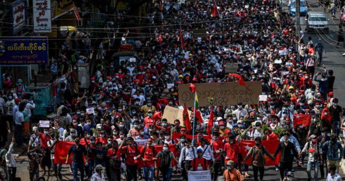 เมียนมาประท้วงต้านรัฐประหารเป็นวันที่ 8