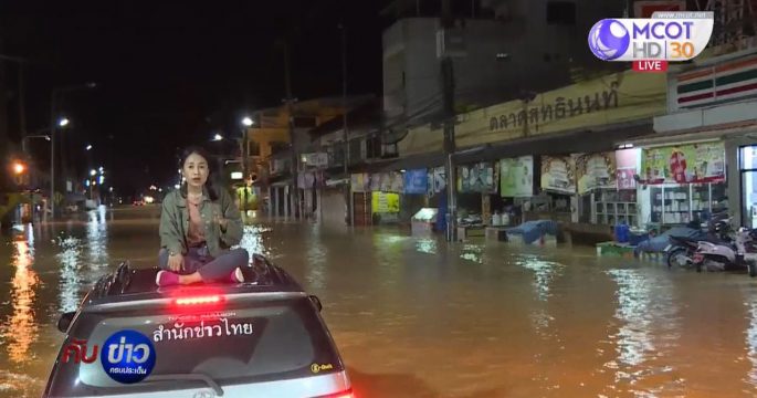 เชียงราย 16 ส.ค. – หลังฝนตกต่อเนื่องตลอดทั้งคืน ประกอบกับต้นน้ำในที่บ้านโจตาดา เขตประเทศเมียนมา ไหลมาสมทบ ทำให้แม่น้ำสายไหลทะลักเข้าท่วมบ้านเรือนและย่านการค้า ระดับน้ำในแม่น้ำสาย อ.แม่สาย จ.เชียงราย สูงปริ่มตลิ่งไหลเชี่ยวกรากเป็นสีขุ่นแดงจัด ทะลักมาตามช่องอาคารในบางจุด ทหารช่างและเทศบาลตำบลเวียงพางคำ เทศบาลตำบลแม่สาย ลงพื้นที่สำรวจความแรงของน้ำ โดยน้ำจากรอยรั่วเข้าท่วมพื้นที่ใต้สะพานแห่งที่ 1 ชุมชนเกาะทราย ชุมชนไม้ลุงขน แต่ปริมาณน้ำยังไม่มากนัก เทศบาลตำบลแม่สาย ประกาศจากรถประชาสัมพันธ์ให้ประชาชนในพื้นที่ติดตามสถานการณ์ใกล้ชิด เตรียมพร้อมหากมีมวลน้ำปริมาณมากจะได้อพยพออกจากพื้นที่ได้ทัน จากการสำรวจ พบว่าจุดที่มีน้ำทะลักเข้ามาตามรอยแยกมี 10 จุด แบ่งเป็นตึกบ้านเรือนพื้นระเบิด 4 หลัง ผนังบ้านติดน้ำระเบิด 6 หลัง ด้าน อ.แม่จัน น้ำท่วมผิวทางจราจรถนนพหลโยธิน 2 จุด จุดที่ 1 บ้านร้องผักหนาม-สถานีวิทยุ 914-บ้านปงอ้อ ต.แม่จัน จุดที่ 2 ลำน้ำแม่ไร่ (บริเวณไฟแดงแยกดอยตุง) น้ำหลากเข้าท่วมผิวจราจรและบ้านเรือนบางส่วนในพื้นที่หมู่ 7, 9 ต.แม่ไร่ กองอำนวยการป้องกันและบรรเทาสาธารณภัยจังหวัดเชียงราย สั่งการหน่วยงานที่เกี่ยวข้องดำเนินการเตรียมพร้อมเครื่องมืออุปกรณ์ […]