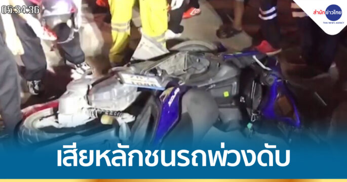 จยย. 2 คันซิ่งย้อนศร ทำหนุ่มอาสากู้ภัยถูกรถพ่วงชน