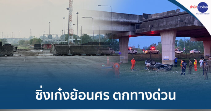 สาวซิ่งเก๋งย้อนศรบนทางด่วน ชนแบริเออร์ร่วงดับ 1 สาหัส 1