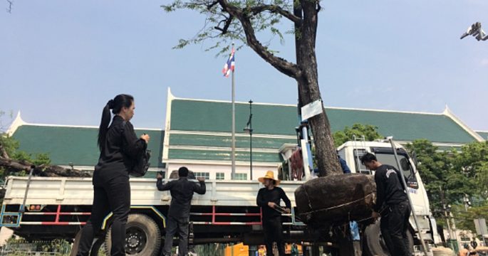 ทีมรุกขกร ขนย้ายต้นมะขามสนามหลวง 30 ต้น ซึ่งเป็นล็อตสุดท้าย เปิดพื้นที่สำหรับการก่อสร้างพระเมรุมาศ
