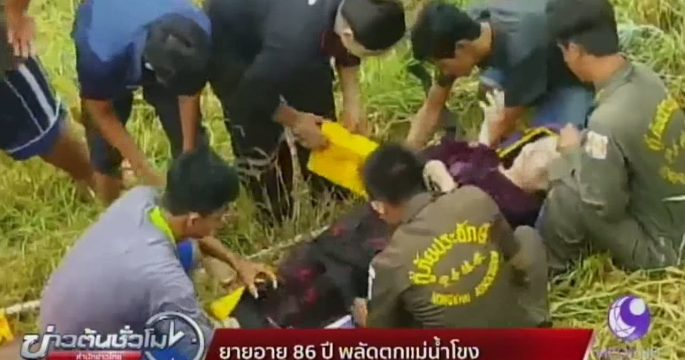 นาทีชีวิต เจ้าหน้าที่กู้ภัยและชาวบ้านเร่งช่วยเหลือ นางนำ แซ่คุ้ง อายุ 86 ปี ขึ้นจากน้ำโขง หลังจากลื่นไถลตกลงไปริมน้ำโขงห่างจากตลิ่งกว่า 3 เมตร บริเวณท่าน้ำวัดลำดวนเขตเทศบาลเมืองหนองคาย