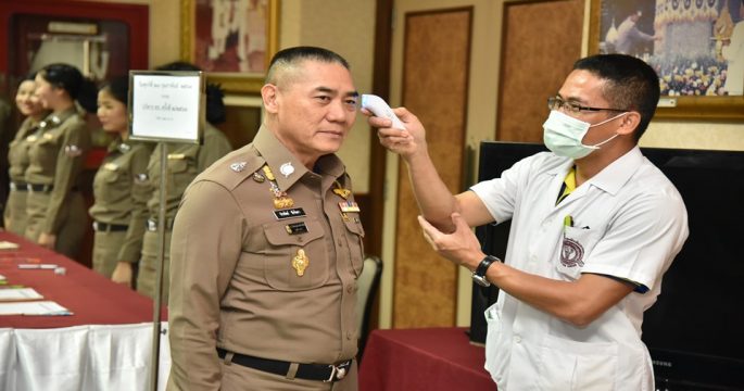 ผบ.ตร.รับผิดชอบต่อสังคม ตรวจวัดอุณหภูมิร่างกายป้องกันโควิด 19 ก่อนเข้าประชุมบริหาร ตร.ปรากฎ “รอด” ไม่พบไข้!!