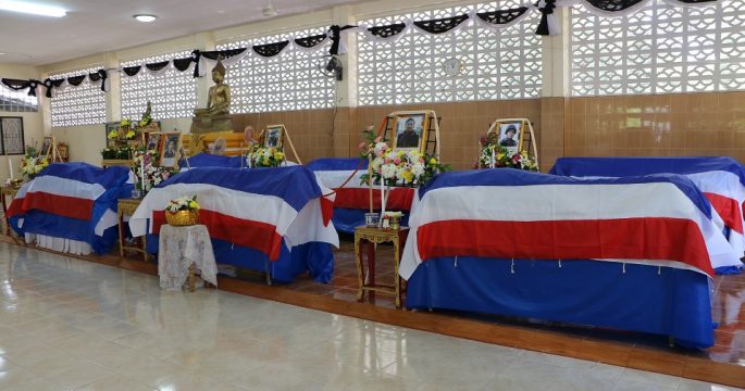 รอง ผอ.รมน.ภาค 4 ส่วนหน้า เป็นประธานพิธีวางพวงหรีดและรดน้ำศพทหารพรานและตำรวจที่เสียชีวิตจากเหตุคนร้ายลอบวางระเบิดที่ จ.ยะลา