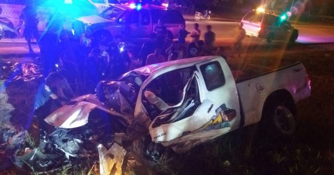 นครศรีธรรมราช 14 ต.ค.-รถกระบะเสียหลักตกถนน ตายสยอง 3 ศพ บาดเจ็บอีก 6 ทั้งหมดเป็นญาติพี่น้องกัน กำลังขับรถกลับบ้านที่ อ.หัวไทร หลังไปทำงานรับจ้างจับกุ้งที่กระบี่ เมื่อเวลา 02.30 น.วันที่ 14 ต.ค.60 ตำรวจ สภ.การะเกด อ.เชียรใหญ่ จ.นครศรีธรรมราช ได้รับแจ้งเกิดเหตุรถยนต์กระบะพลิกคว่ำตกร่องกลางถนนสายนครศรีฯ-หัวไทร หมู่ 6 ต.เขาพระบาท อ.เชียรใหญ่ จึงรุดไปตรวจสอบ พบรถยนต์คันเกิดเหตุ เป็นรถกระบะ โตโยต้า สีขาว ทะเบียน ผค-9915 นครศรีธรรมราช สภาพพังยับเยิน มีผู้เสียเสียชีวิต 3 คน คือ น.ส.อาซีหยะ แขกพงค์ อายุ 16 ปี น.ส.อานิต้า แขกพงค์ อายุ 18 ปี พี่สาว บ้านอยู่หมู่ 6 ต.เกาะเพชร อ.หัวไทร จ.นครศรีธรรมราช […]