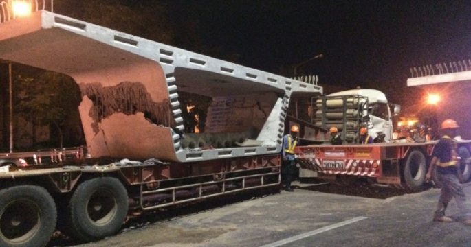 รถบรรทุกแท่งปูนสำหรับทำคานรางรถไฟฟ้าสายสีแดง รถเครน และรถกระบะ ชนกันรวมกัน 9 คัน บนถนนวิภาวดีรังสิต เหตุรถทัวร์ตัดหน้ากระชั้นชิด