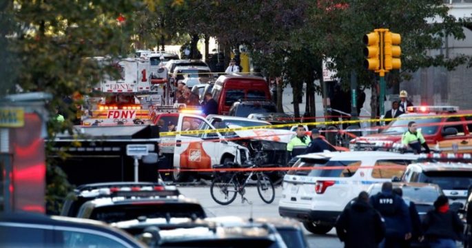 คนร้ายใช้รถรถกระบะที่เช่ามาขับพุ่งชนประชาชนและคนขี่จักรยานในเส้นทางสำหรับจักรยานเลียบฝั่งแม่น้ำฮัดสันในย่านแมนฮัตตันของนครนิวยอร์ค