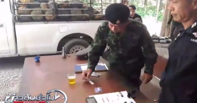 เจ้าหน้าที่ตำรวจ ทหาร ลำเลียงฟักทองกว่า 1 ตัน ลงจากรถกระบะที่ขับผ่านจุดตรวจวังดิน อ.ลี้ จ.ลำพูน พบคนขับท่าทางมีพิรุธ ตรวจค้นพบซุกซ่อนยาบ้าจำนวนหนึ่งในกองฟักทอง