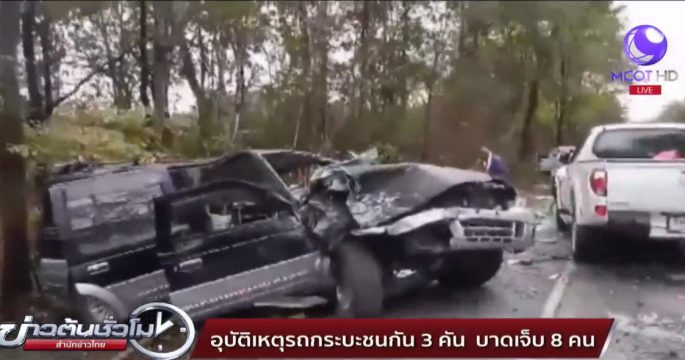 ลำปางรถกระบะชนกัน 3 คันรวด เจ็บ 8 ราย