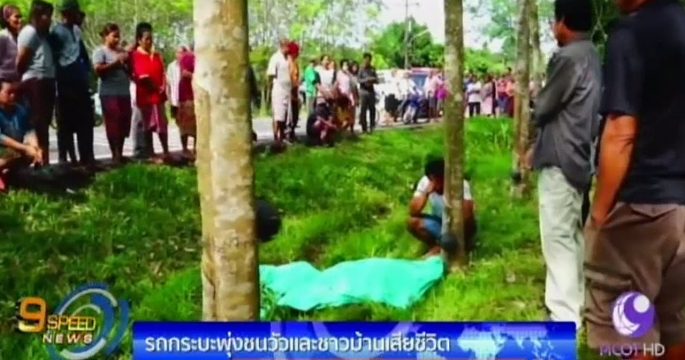 เกิดเหตุรถกระบะทะเบียนบท 557 พัทลุง เสียหลังพุ่งลงข้างทางชนวัวและนางจงจิตรเสียชีวิตทันที ส่วนสาเหตุคาดว่าคนขับหลับใน