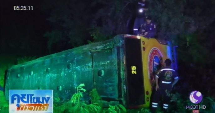 รถบัสโรงงานมินิแบถูกกระบะขับปาดหน้า จนเสียหลักพลิกคว่ำ 3 ตลบ พุ่งลงข้างทางที่ จ.อ่างทอง บาดเจ็บ 15 ราย