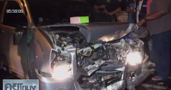 รถกระบะรับคนงานก่อสร้างเสียหลักพุ่งชนกำแพงศูนย์พัฒนาเด็กเล็ก ทำให้มีผู้เสียชีวิต 1 คน บาดเจ็บสาหัส 2 คน