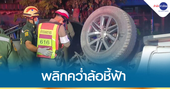 รองสารวัตรจราจร สภ.ปากคลองรังสิต ออกเวรขับรถกระบะกลับบ้าน เสียหลักเฉี่ยวชนรถที่จอดข้างทาง ก่อนพลิกคว่ำหงายท้องล้อชี้ฟ้า ทับร่างเสียชีวิตคาที่