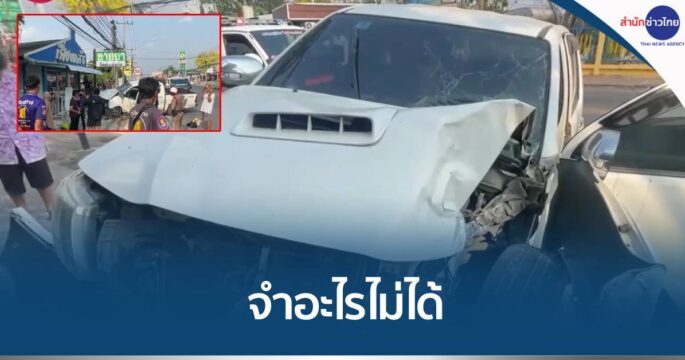 รถกระบะเสียหลักพุ่งชนร้านขายยาข้างทาง ย่านรังสิต – นครนายก มีผู้ได้รับบาดเจ็บ 5 ราย ส่วนคนขับอยู่ในอาการมึนงงสับสน บอกจำอะไรไม่ได้เลย