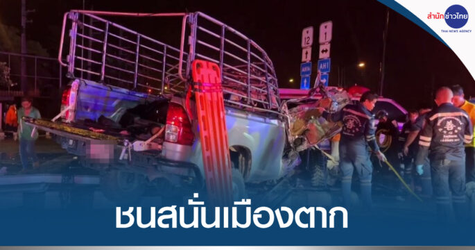 รถกระบะขนแรงงานต่างด้าวชนประสานงากับรถ 6 ล้อ บรรทุกสินค้า กลางสี่แยกเมืองตาก มีผู้เสียชีวิต 5 ราย บาดเจ็บสาหัส 12 ราย