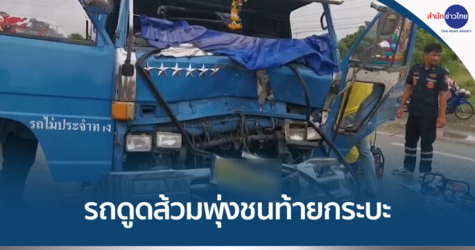 รถดูดส้วมเบรกไม่อยู่ พุ่งชนท้ายกระบะเต็มแรง สภาพรถเสียหายทั้งคู่ คนนั่งคนขับรถดูดส้วมถูกอัดก๊อบปี้ติดหน้ารถ ขาซ้ายหัก กู้ภัยเร่งช่วยเหลือนำส่งโรงพยาบาล