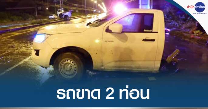 กล้องหน้ารถจับภาพนาทีระทึก! หนุ่มวัย 24 ปี ขับกระบะไปทำงาน เสียหลักลื่นไถลหมุนฟาดเสาไฟกลางถนน จนรถขาด 2 ท่อน