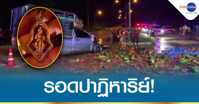 หนุ่มวัย 22 ปี เพิ่งออกรถกระบะป้ายแดงขนส่งแตงโมไม่ถึง 2 เดือน ประสบอุบัติเหตุเสียหลักพุ่งชนรถบรรทุก รถพังยับเยิน แตงโมตกเกลื่อนถนน ขณะที่คนขับรอดปาฏิหาริย์
