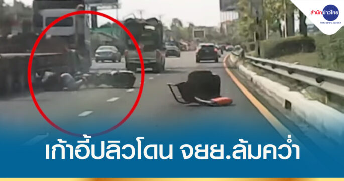 นาทีชีวิต! เก้าอี้ร่วงหล่นจากรถกระบะไปโดนคนขี่รถจักรยานยนต์ล้มคว่ำได้รับบาดเจ็บ หวิดเกิดเหตุสลดบนท้องถนน