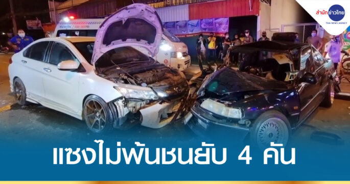หนุ่มซิ่งเก๋งแซงไม่พ้น เสียหลักข้ามเลนพุ่งชนประสานงาพังยับ 4 คัน กลางเมืองราชบุรี มีผู้ได้รับบาดเจ็บสาหัส 1 ราย