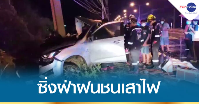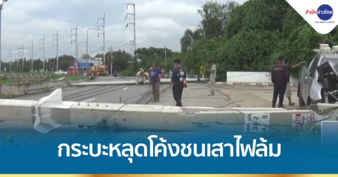 รถกระบะหลุดโค้งชนเสาไฟฟ้าล้ม 6 ต้น