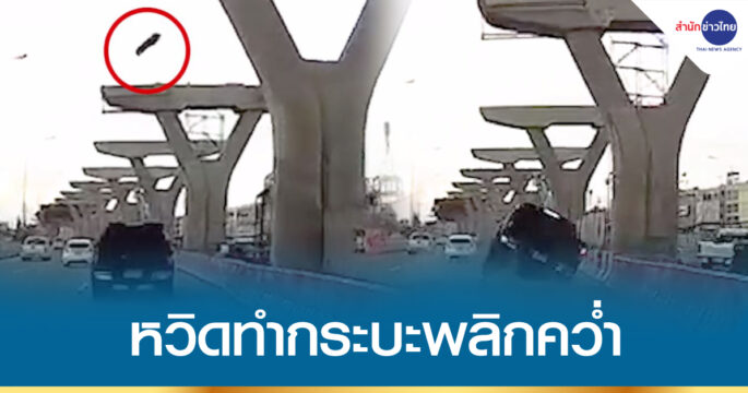 เปิดภาพวงจรปิด นาทีระทึก! แท่งเหล็กก่อสร้างหล่นเฉียดหน้ารถกระบะที่กำลังแล่นอยู่บนถนนทางต่างระดับพระราม 2 จนรถเสียหลักเกือบพลิกคว่ำ