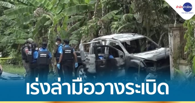 ตำรวจศูนย์พิสูจน์หลักฐาน ตรวจสอบเหตุระเบิดรถกระบะ ภายในซอยกอเดร์อูมา ต.สะเตง อ.เมืองยะลา ทำให้กำนัน ต.สามัคคี คนขับ ถูกแรงอัดสะเก็ดระเบิด อาการสาหัส