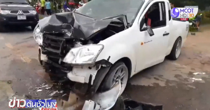 รถกระบะพุ่งชนรถสองแถวที่มีนักเรียนโดยสารมาเต็มคันรถ บนถนนมิตรภาพ ทางคู่ขนานขาออก อ.เมืองนครราชสีมา นักเรียนบาดเจ็บ 8 คน