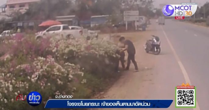 หัวขโมยเตรียมลักกระบะจอดหน้าศูนย์รถจักรยานยนต์กลางเมืองอ่างทอง เจ้าของเห็นขับรถไล่จับกลางถนนก่อนแจ้งตำรวจดำเนินคดี