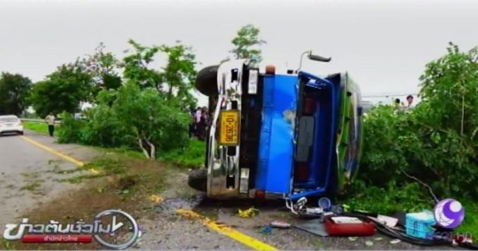รถขนแรงงานต่างด้าว 45 คน พลิกคว่ำตกร่องกลางถนนสายพหลโยธินขาขึ้น จ.กำแพงเพชร แรงงานบาดเจ็บเล็กน้อย 11 คน