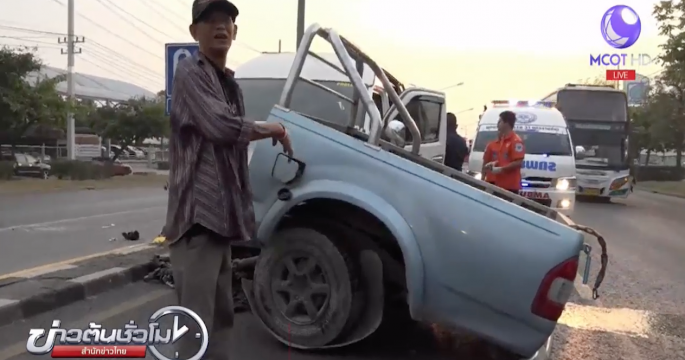 รถตู้พุ่งชนรถกระบะขาด 2 ท่อน บาดเจ็บกว่า 7 คน ในจำนวนนี้มีอาการสาหัสคนขับรถตู้ ให้การว่านำผู้โดยสาร 11 คน ไปส่งโรงงาน เมื่อถึงบริเวณเกิดเหตุ รถกระบะกลับรถจากทางเบี่ยงช่องซ้ายสุดระยะกระชั้นชิด