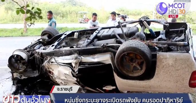 หนุ่มขับกระบะยางระเบิดเสียหลักพุ่งชนเสาไฟฟ้าและต้นไม้ ช่วงกิโลเมตรที่ 109 พื้นที่ตำบลอ่างทอง อำเภอเมืองราชบุรี รอดปาฏิหาริย์