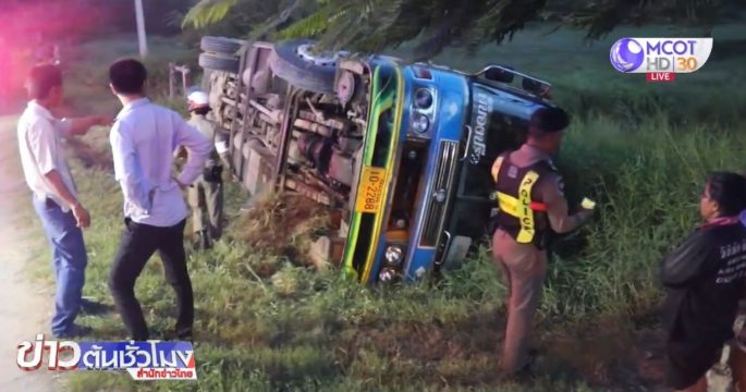 รถบัสทัศนศึกษานักเรียนคันส่งหลุดจากตัวรถพลิกคว่ำตะแคงพุ่งลงข้างทาง บริเวณถนนสายอู่ยา-ท่าเสด็จ อ.เมือง จ.สุพรรณบุรี มีนักเรียนบาดเจ็บ 8 คน ครูเจ็บ 4 คน