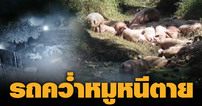 อลหม่าน! รถพ่วงขนหมูประสบอุบัติเหตุพลิกคว่ำบนถนนชัยนาท-สิงห์บุรี หมูนับร้อยกระเด็นออกจากรถ วิ่งหนีตายอลหม่าน