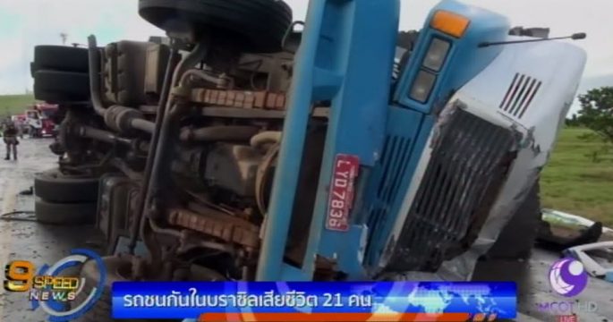 รถบรรทุกหินชนประสานงารถบัสและรถพยาบาลอีก 2 คัน มีผู้เสียชีวิตอย่างน้อย 21 คน บาดเจ็บเกือบ 30 คน จุดเกิดเหตุอยู่ใกล้กับเมืองกัวราพารี ทางตะวันออกเฉียงใต้ของบราซิล