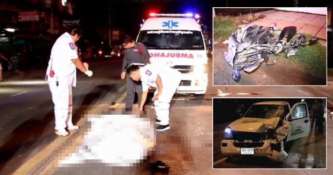พัทยา 17 ก.ย.-สองหนุ่มวัยเบญจเพสซิ่งรถจักรยานยนต์แซงข้ามเลน ชนประสานงากับรถกระบะที่ขับสวนมาอย่างจัง เป็นเหตุมีผู้เสียชีวิต 1 บาดเจ็บสาหัส 1 เมื่อเวลา 05.00 น.วันนี้(17 ก.ย.) ตำรวจ สภ.บางละมุง รับแจ้งเกิดเหตุรถกระบะชนกับรถจักรยานยนต์ มีผู้เสียชีวิตและบาดเจ็บ บริวณหน้าปากซอยชัยพรวิถี 1 ถนนชัยพรวิถี ม.5 ต. นาเกลือ อ.บางละมุง จ.ชลบุรี จึงรุดไปตรวจสอบ พร้อมด้วยเจ้าหน้าที่กู้ภัยมูลนิธิสว่างบริบูรณ์เมืองพัทยา ในที่เกิดเหตุพบศพผู้เสียชีวิต เป็นชายอายุประมาณ 25-30 ปี ส่วนผู้บาดเจ็บ อาการสาหัส เป็นชายอายุประมาณ 25-30 ปี เจ้าหน้าที่กู้ภัยนำส่ง รพ.บางละมุง ใกล้กันพบรถจักรยานยนต์ ยามาฮ่า รุ่นมีโอ สีดำ ทะเบียน งงย-208 ชลบุรี สภาพพังยับเยิน และพบรถกระบะ อีซูซุ สีขาว ทะเบียน ผข-9370 อุบลราชธานี สภาพด้านหน้ารถพังยับเยินเช่นกัน มีนายปพน พุฒพล […]